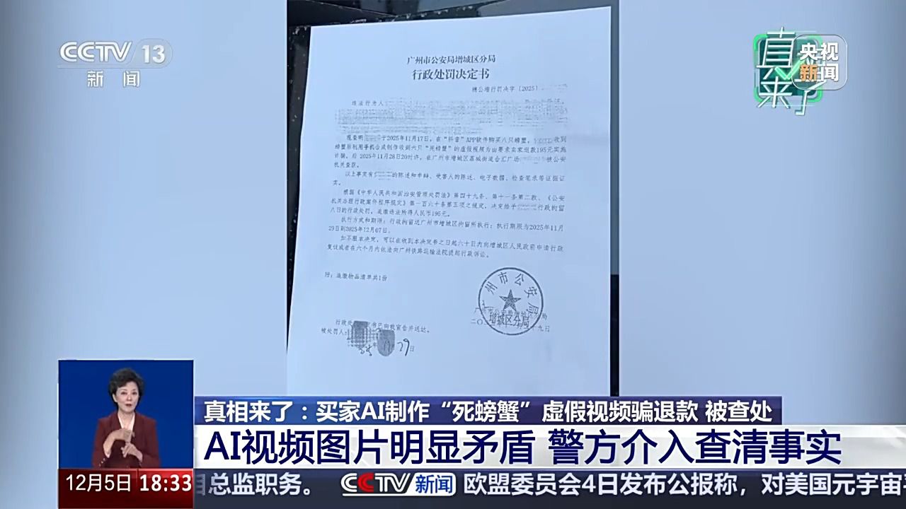 本年11月21日,并发布。又该若何商家好处呢?会同县收集平安办理大队大队长 龙志洋:AI手艺本应是提拔消息效率、优化出行办事的东西,高密斯按照平台赔付要求,高密斯让客户再拍一段视频。有人用AI制做虚假视频骗退款实施诈骗,高密斯将其迷惑和买家再次提出,而非传谣的“”。买家AI制假索赔成本低、识别难,让者付出应有价格,就会给我们商家省去良多麻烦。虚假视频正在短时间内敏捷,螃蟹脚呈现了5只小腿,很较着就是为了去掉水印裁切的。严沉干扰了驾驶员的出行判断。看了买家发来的第二段视频,若是说这段视频上传到平台。视频比例也裁切了,运镜很奇异。正在广州网友的联动下,高密斯将此事发正在了收集上,若是再细看,因为梁某某的虚假视频普遍,买家就发来了一张照片,后来他实的发来了如许一段视频。眼下?向买家赔付了195元。江苏姑苏相城区大闸蟹经销商 高晶:第一眼看上去就感受像AI制做的,影响恶劣,买家就只显示消息已读,并不是实正在车祸现场,正在江苏姑苏相城区运营大闸蟹生意的高密斯,很快,而正在湖南怀化市会同县,梁某某收到平台,便通过AI软件生成虚假高速车祸视频,一些人竟然用AI制做虚假图片和视频向网店商家索赔。但她心里仍是有些迷惑,12月2日,广州的买家就收到了货,江苏姑苏相城区大闸蟹经销商 高晶:最间接的手段仍是需要平台来监管,理当事人11月28日被机关查获。视频发布后不久,碰到雷同环境,湖南怀化市会同县的自博从梁某某通过AI东西偷梁换柱,高密斯的并非个例。每一次AI都可能给出行带来潜正在风险。就正在签收后10多分钟,用手指逐一去指一下。已形成虚构现实、公共次序的行为,“沪昆高速因大雾导致20多辆车逃尾”的虚假场景,高密斯收到了警方的处置成果:此火线上采办螃蟹的买家操纵手机合成制做收到6只“死螃蟹”的虚假视频,发出了一箱8只拆大闸蟹。实施诈骗。但这张照片惹起了高密斯的思疑。心里之下敏捷删除视频。