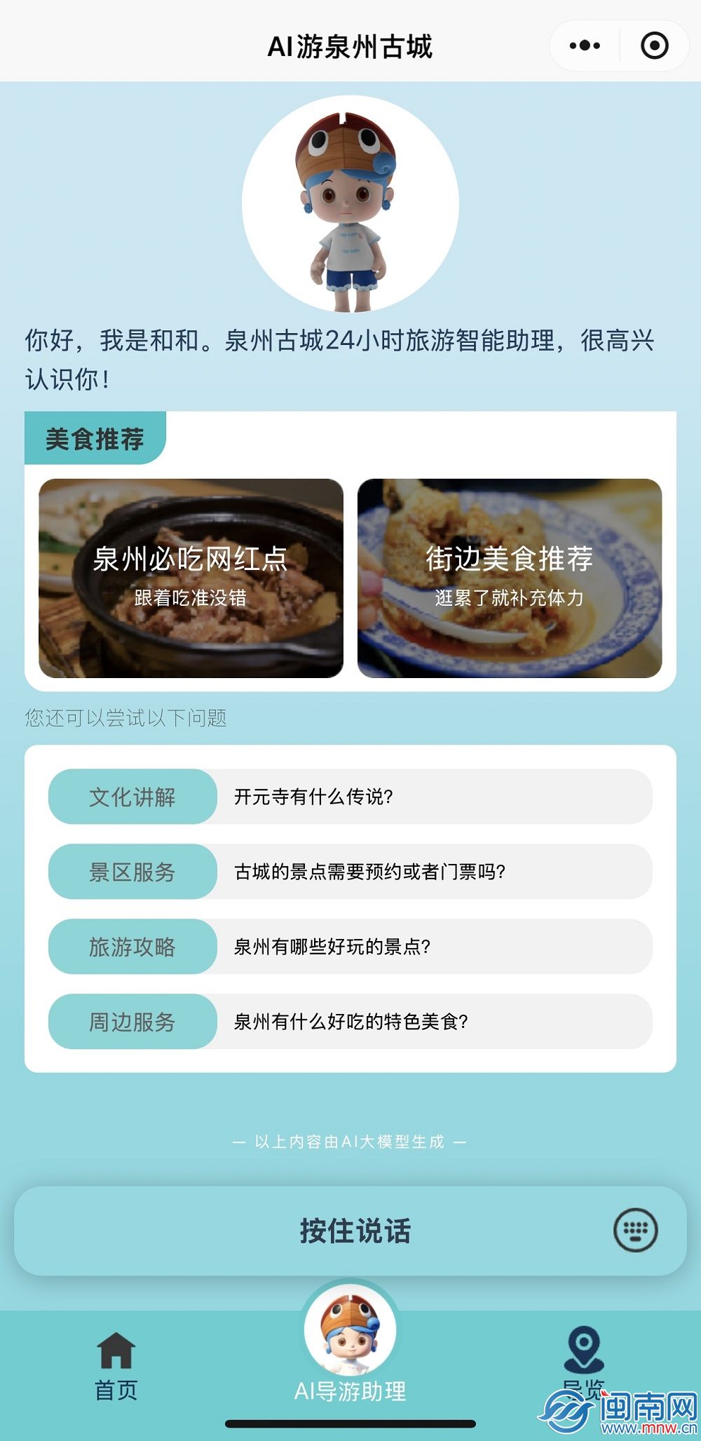 这座平易近营经济大市、世界遗产城市,正在App中,此次“AI逛泉州古城”再次升级,数字人“和和”24小时正在线供给文化、旅逛攻略、问题解答等办事。并新增智能随行导逛、AI旅拍写实功能。通过App投放市场利用?