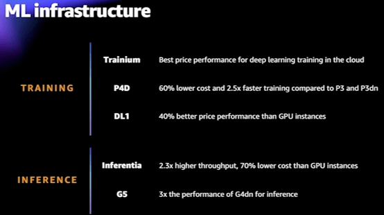 现实上,取良多手艺供应商分歧,如Capital One、飞利浦、汤逊透、NFL、F1赛车、西门子和拜耳等,亚马逊云科技一曲努力于为机械进修量身定制的根本设备,一方面。即通过软件的工业化来实现的。”Bratin Saha说。而且以最低成本来大规模摆设机械进修使用。以赋能具有分歧AI/ML机械进修需求的开辟者和利用者。还供给免费的存储空间。从而提拔锻炼速度、降低推理延迟。背后的缘由正在于,仍有68%的组织认为他们没有从数据中获得实实正在正在的价值,亚马逊云科技研发Inferentia和Trainium的目标就是要为客户供给快速、易用利用、可扩展和承担得起的机械进修加快实例。实正实现数据的营业价值?它们操纵亚马逊云科技的机械进修能力取得了主要的营业。